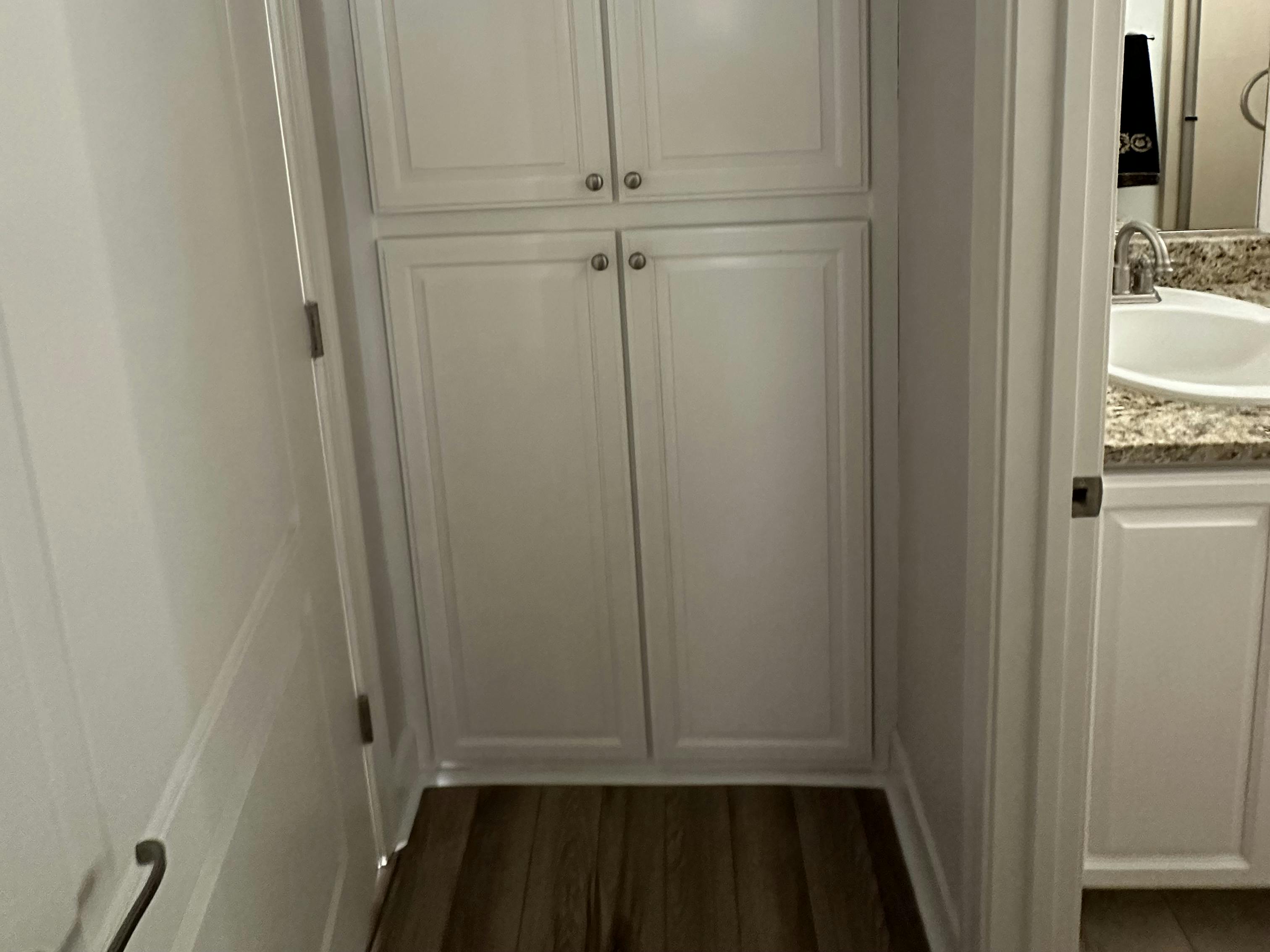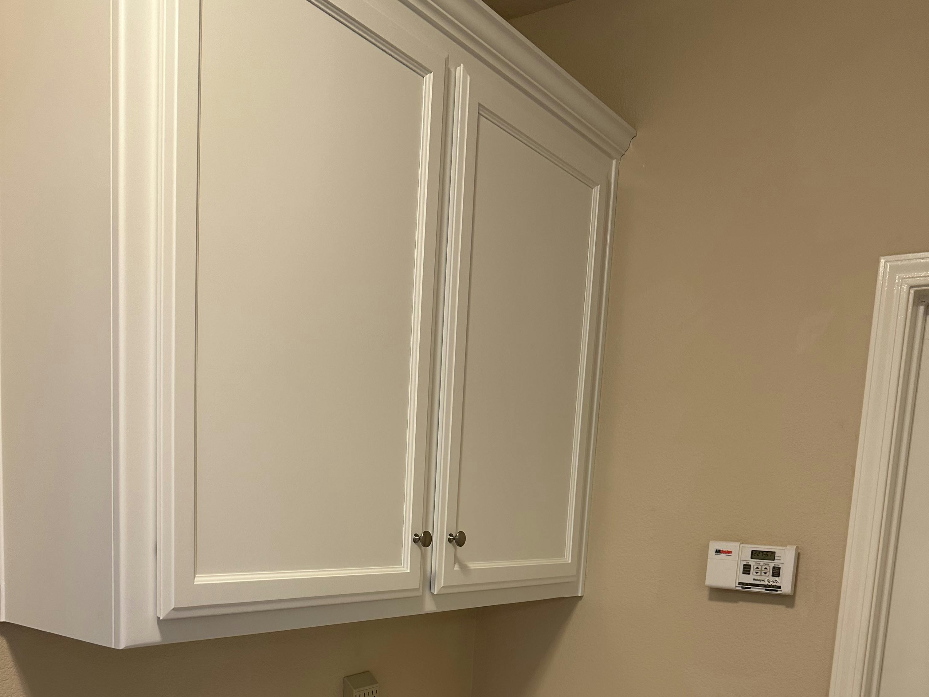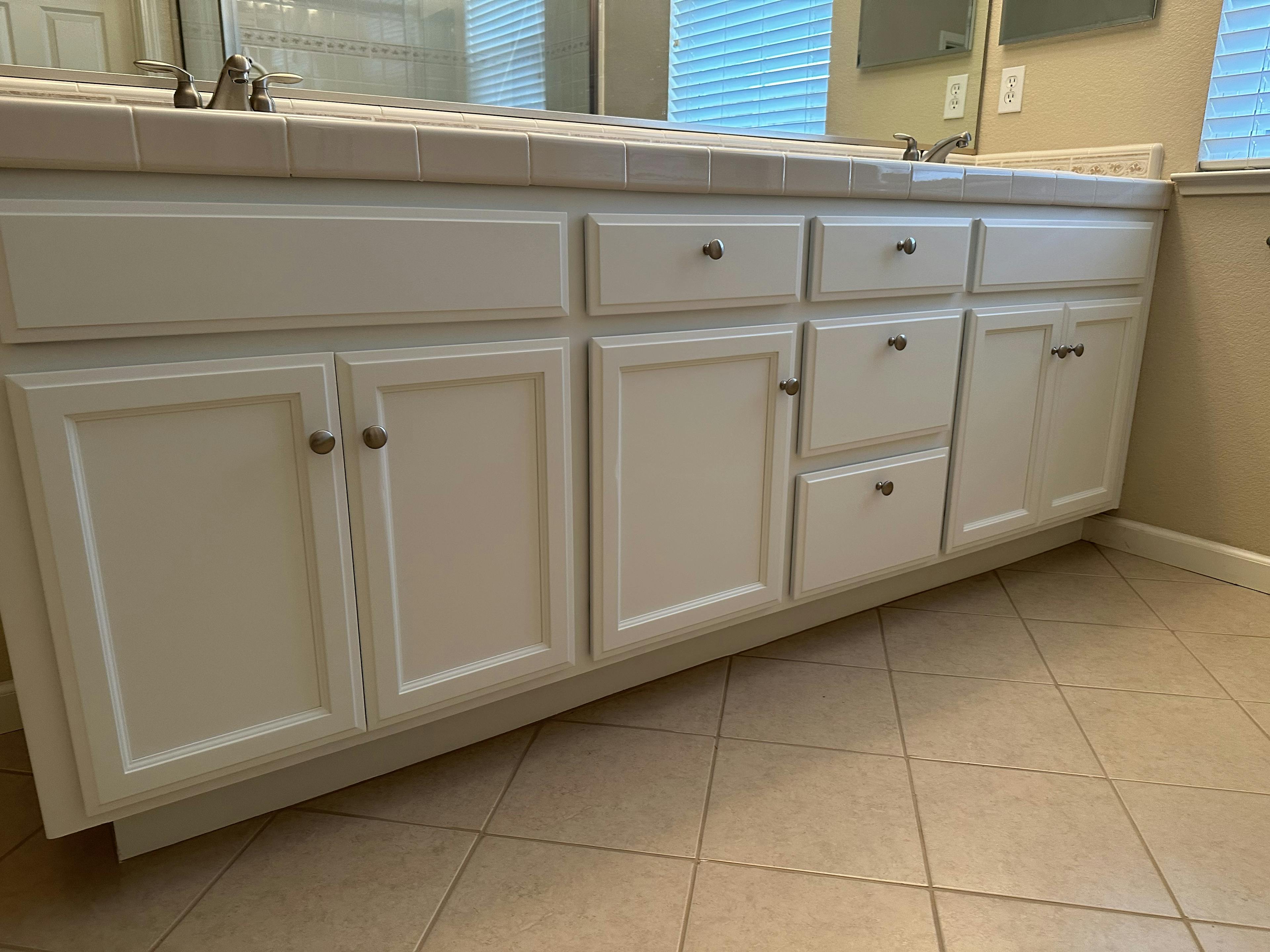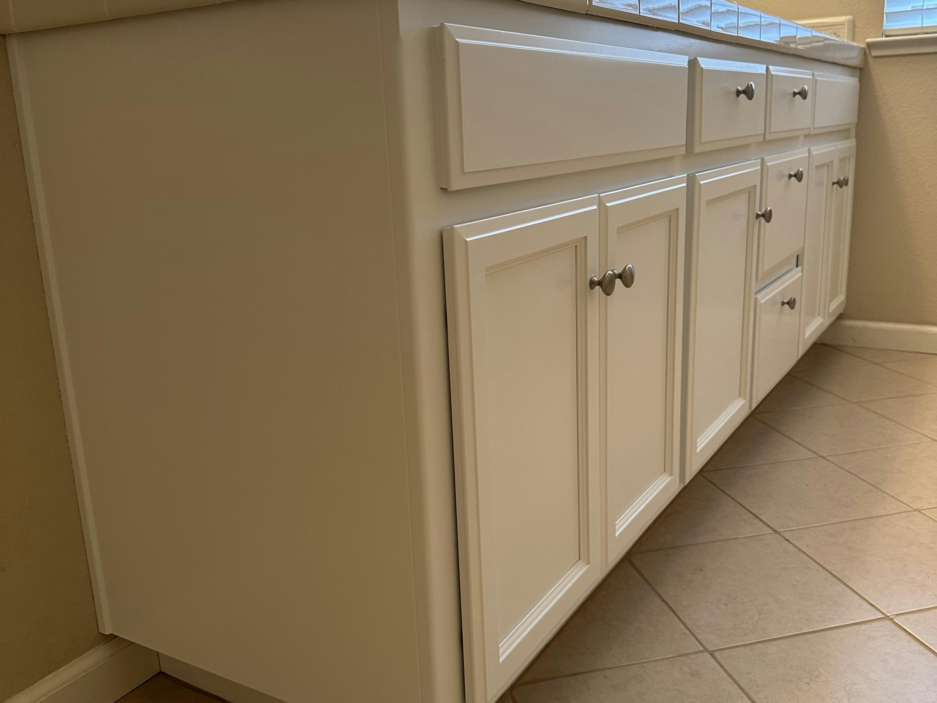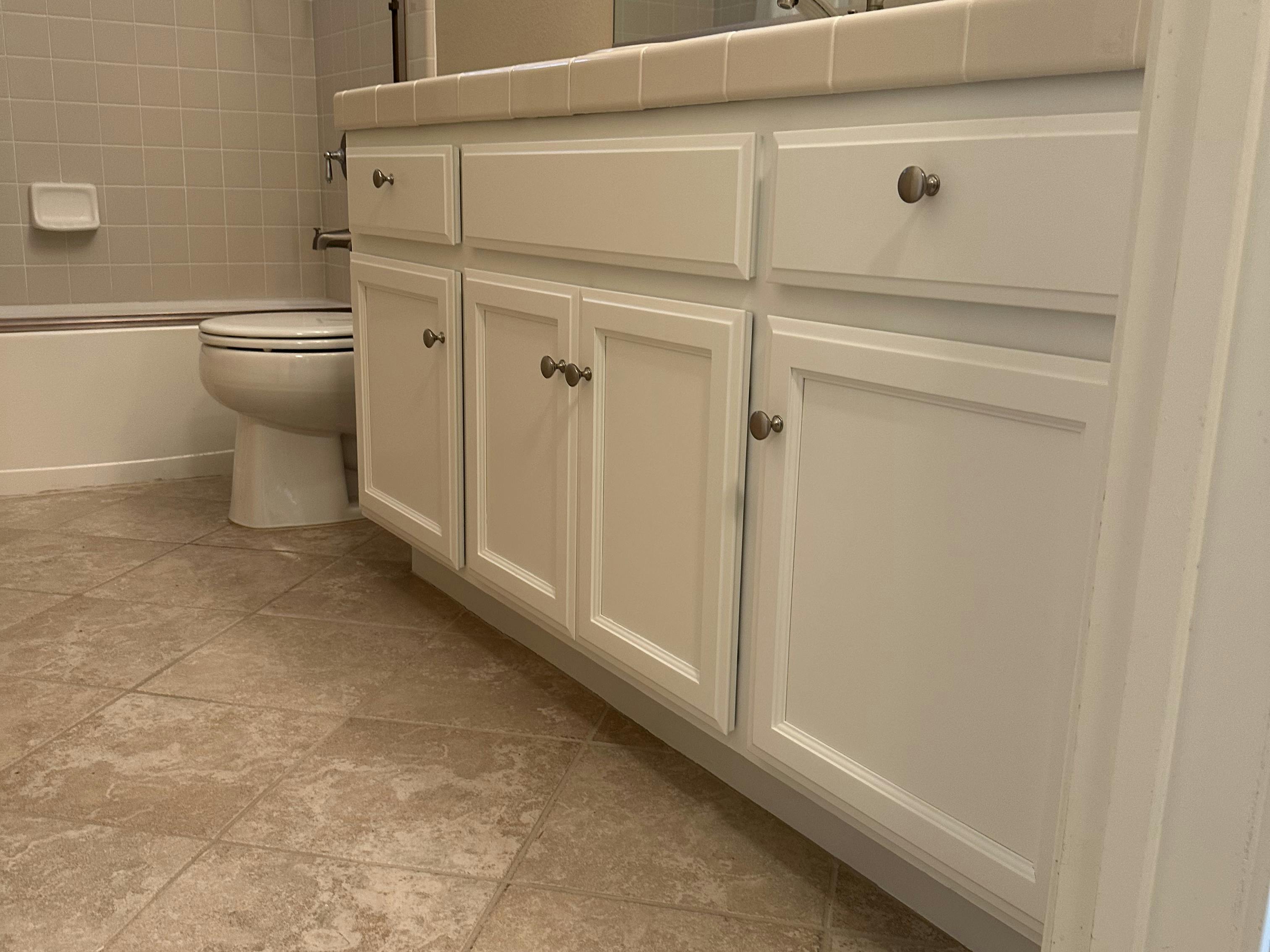 Essential Cabinet Painting recently completed a cabinet painting project for a homeowner in Greenhaven Sacramento. We painted their cabinets throughout their entire home! In total we painted over 30 cabinets and drawers with Kelly Moores "Swiss Coffee" KCMA approved paint.