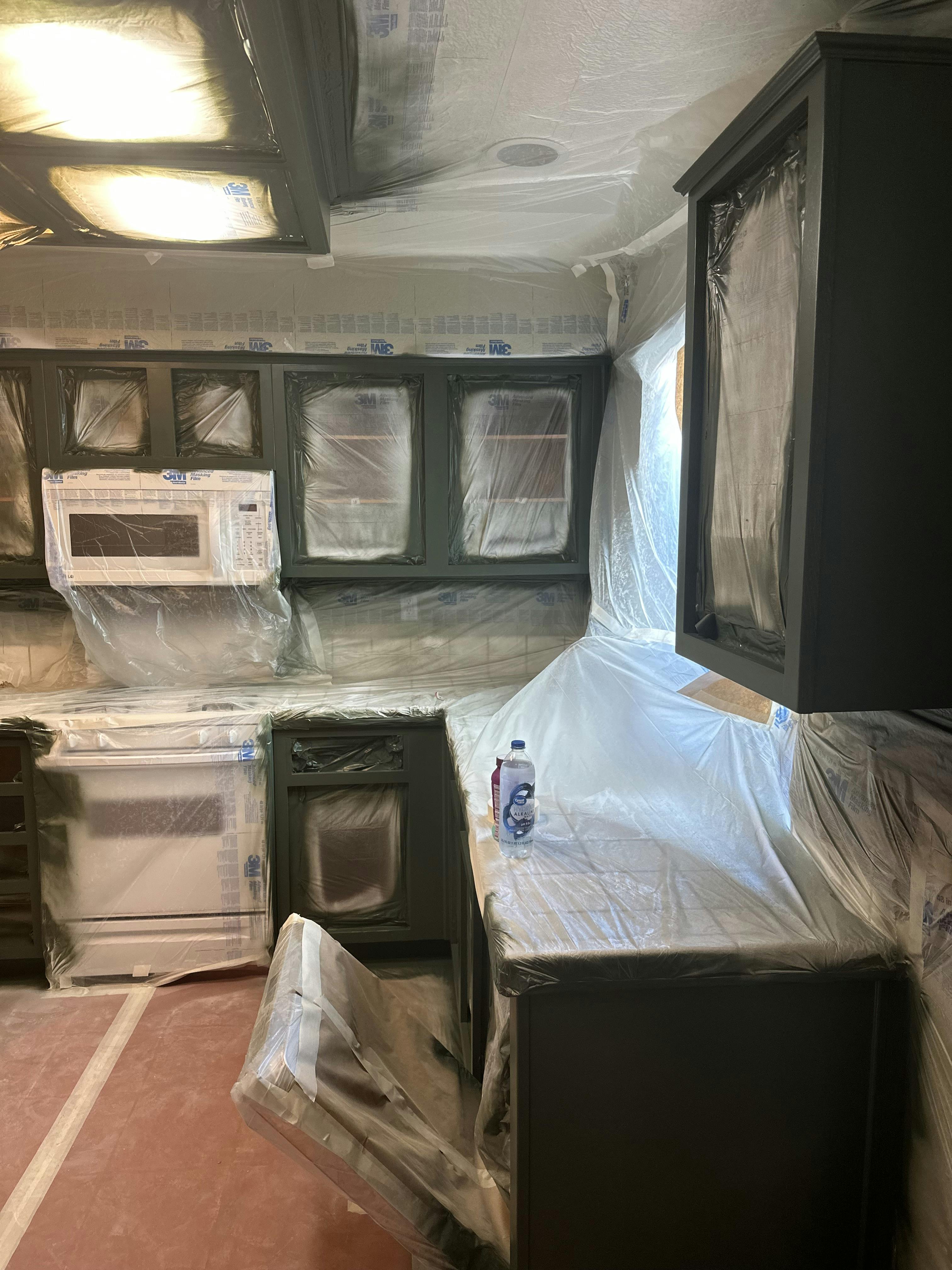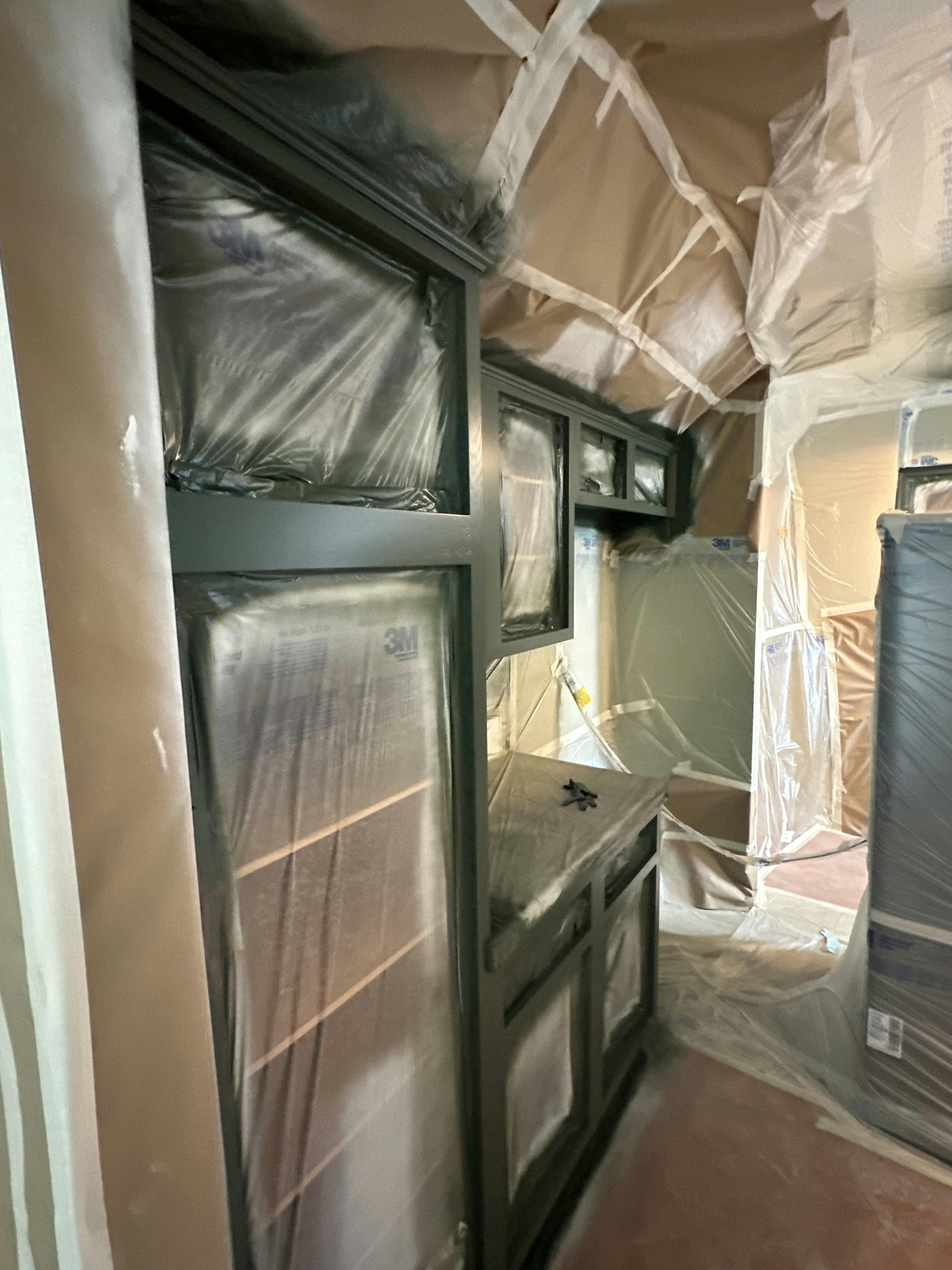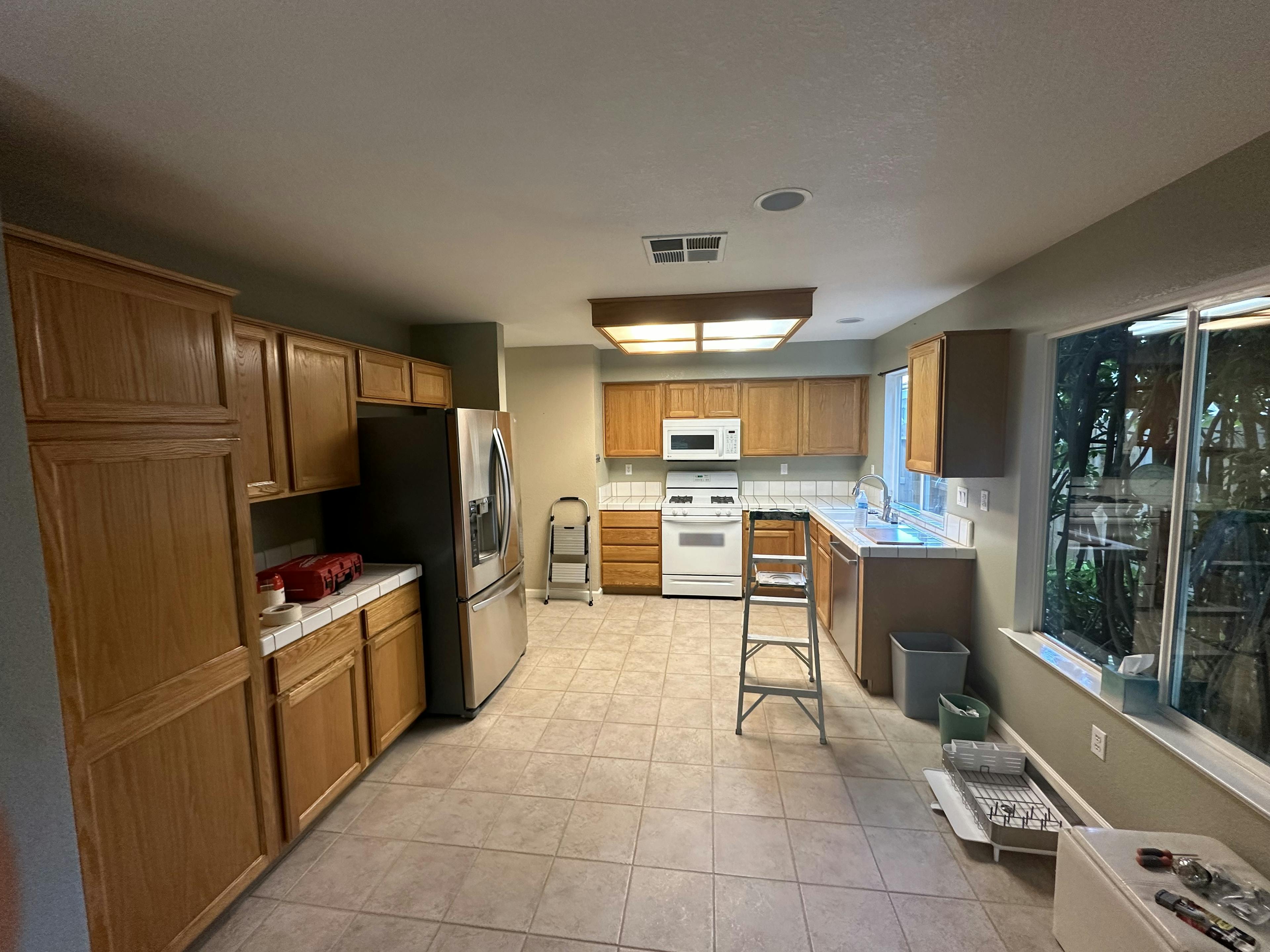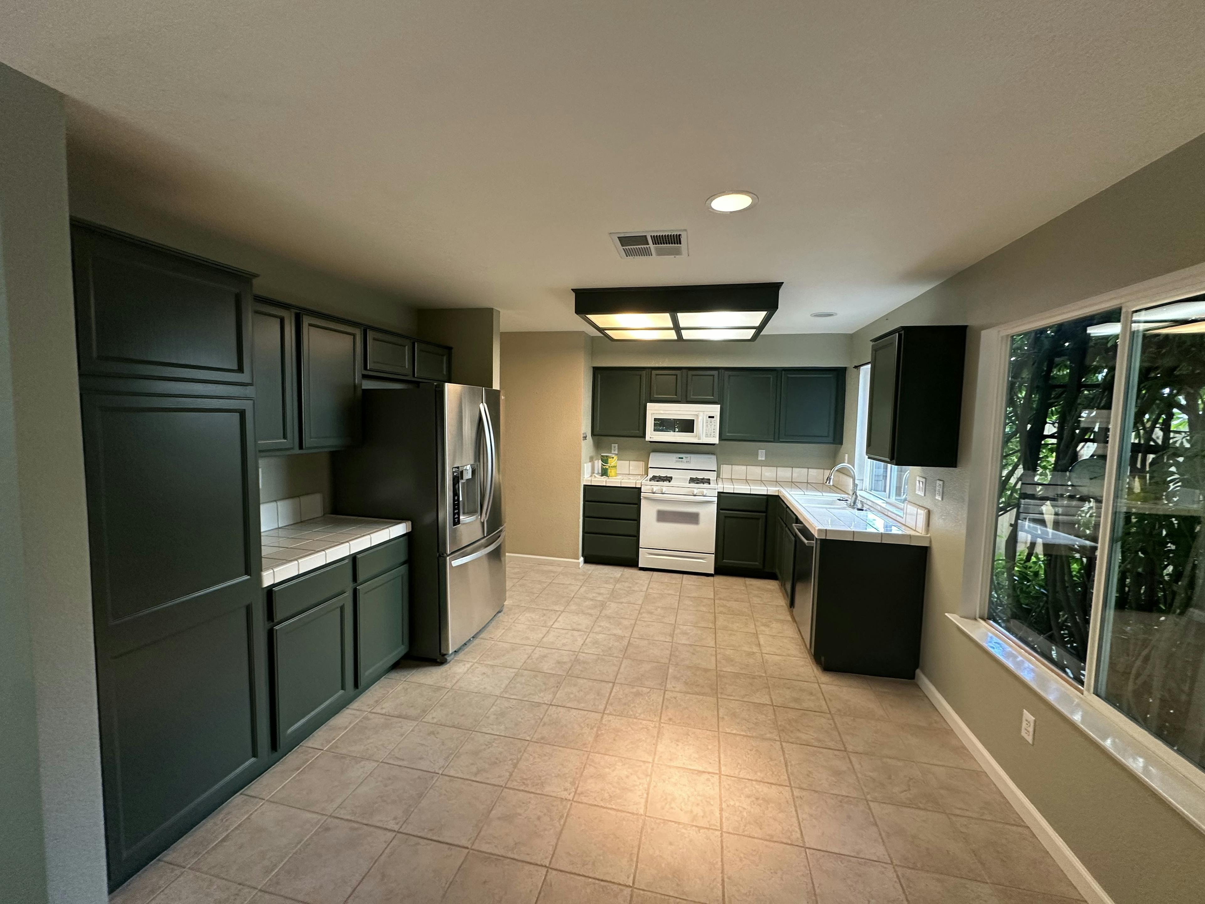 We recently transformed this kitchen in Elk Grove, CA, by refinishing the original oak cabinets with a fresh coat of Rock Garden by Sherwin Williams using high-quality KCMA-certified paint. The deep, earthy green gives this space a whole new personality while maintaining a sleek and modern look. Check out the before and after shots to see how a simple color change can make all the difference!