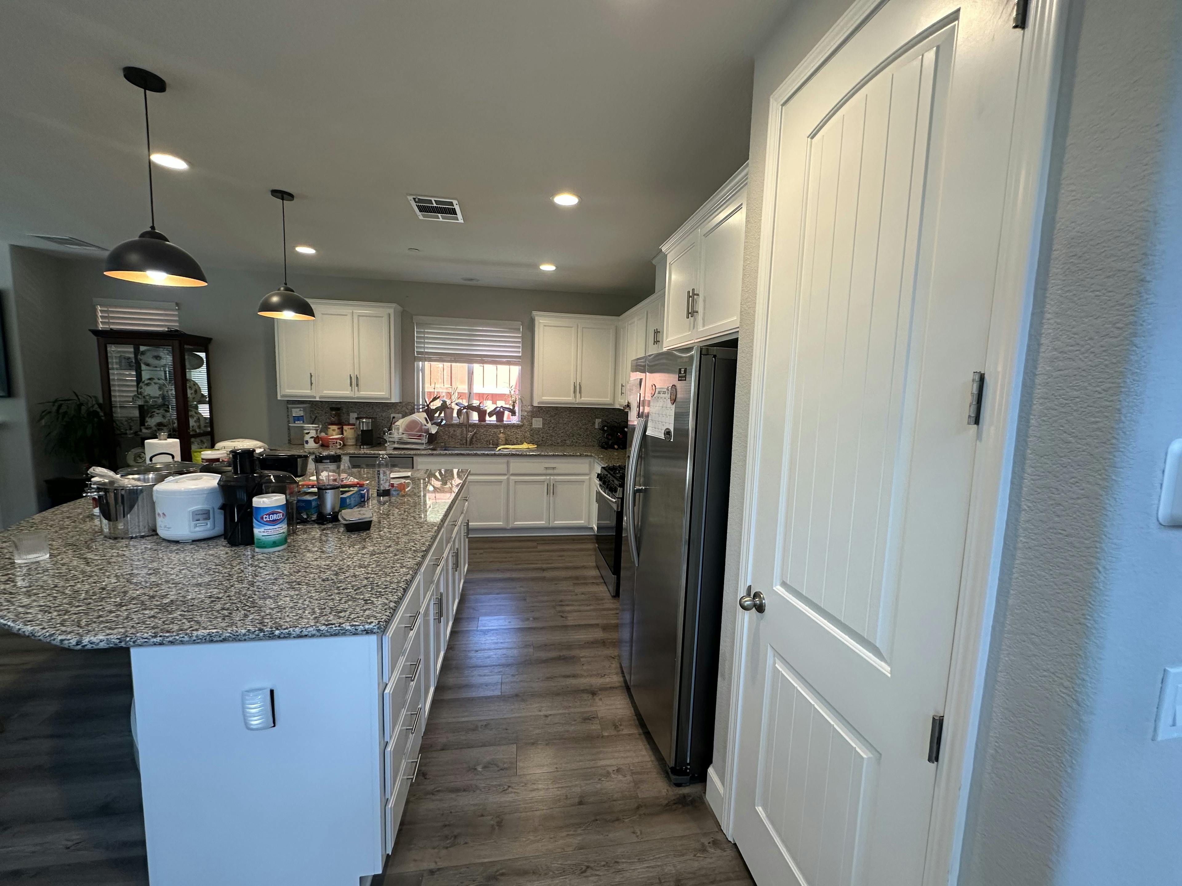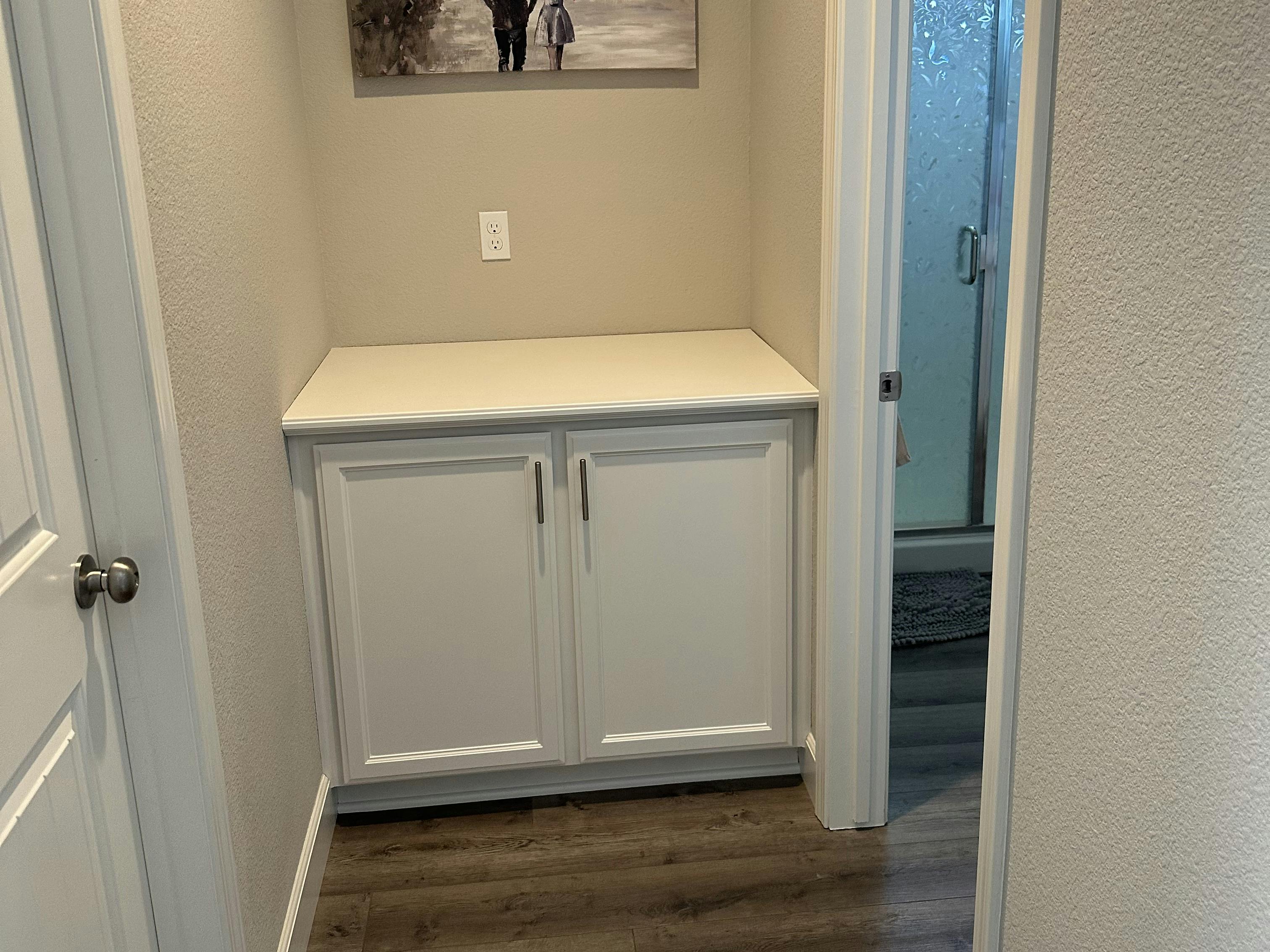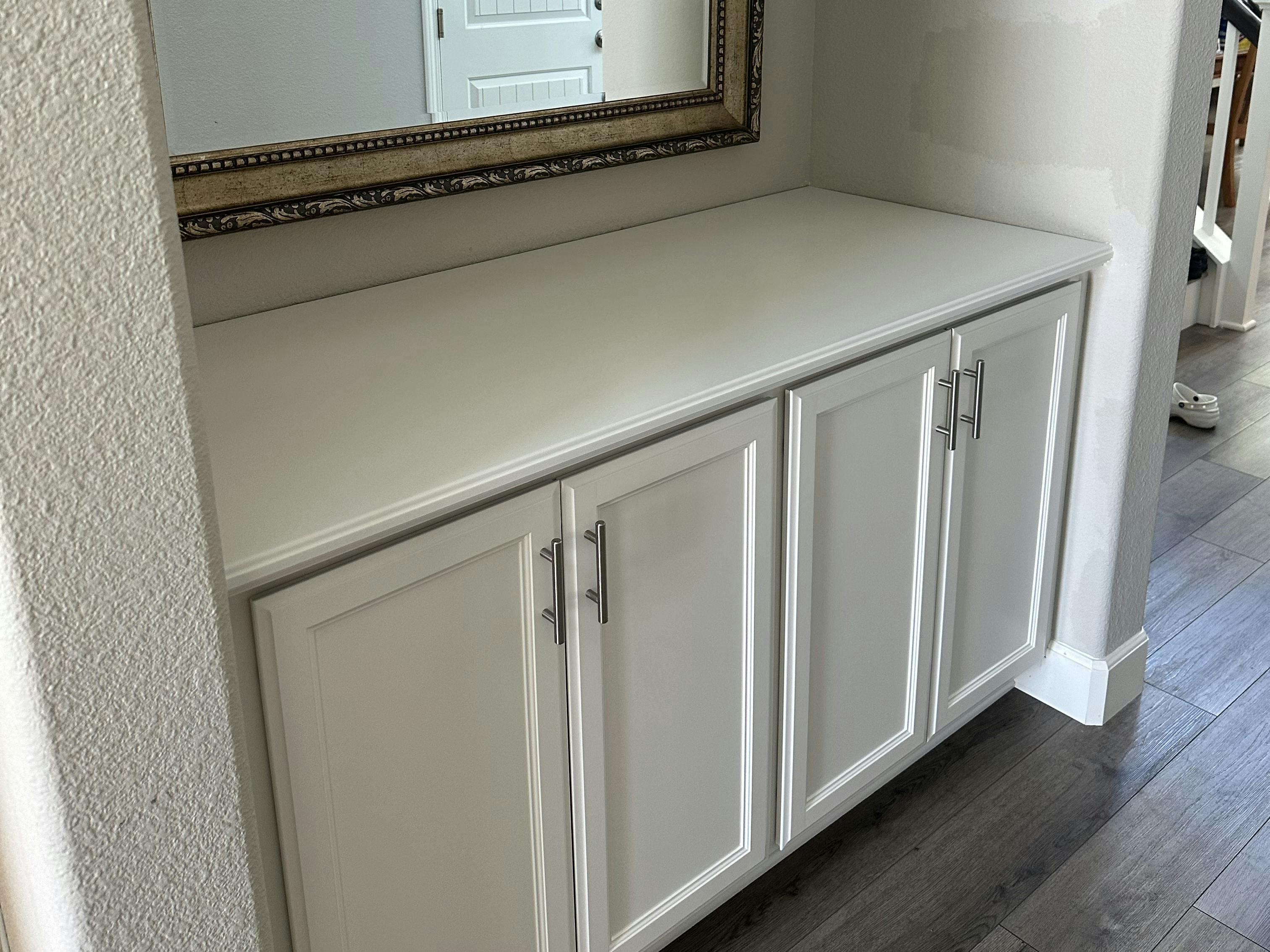 We painted this cabinets plain White for a homeowner in Suisun, CA. We did both their kitchen cabinets and their downstairs cabinets.