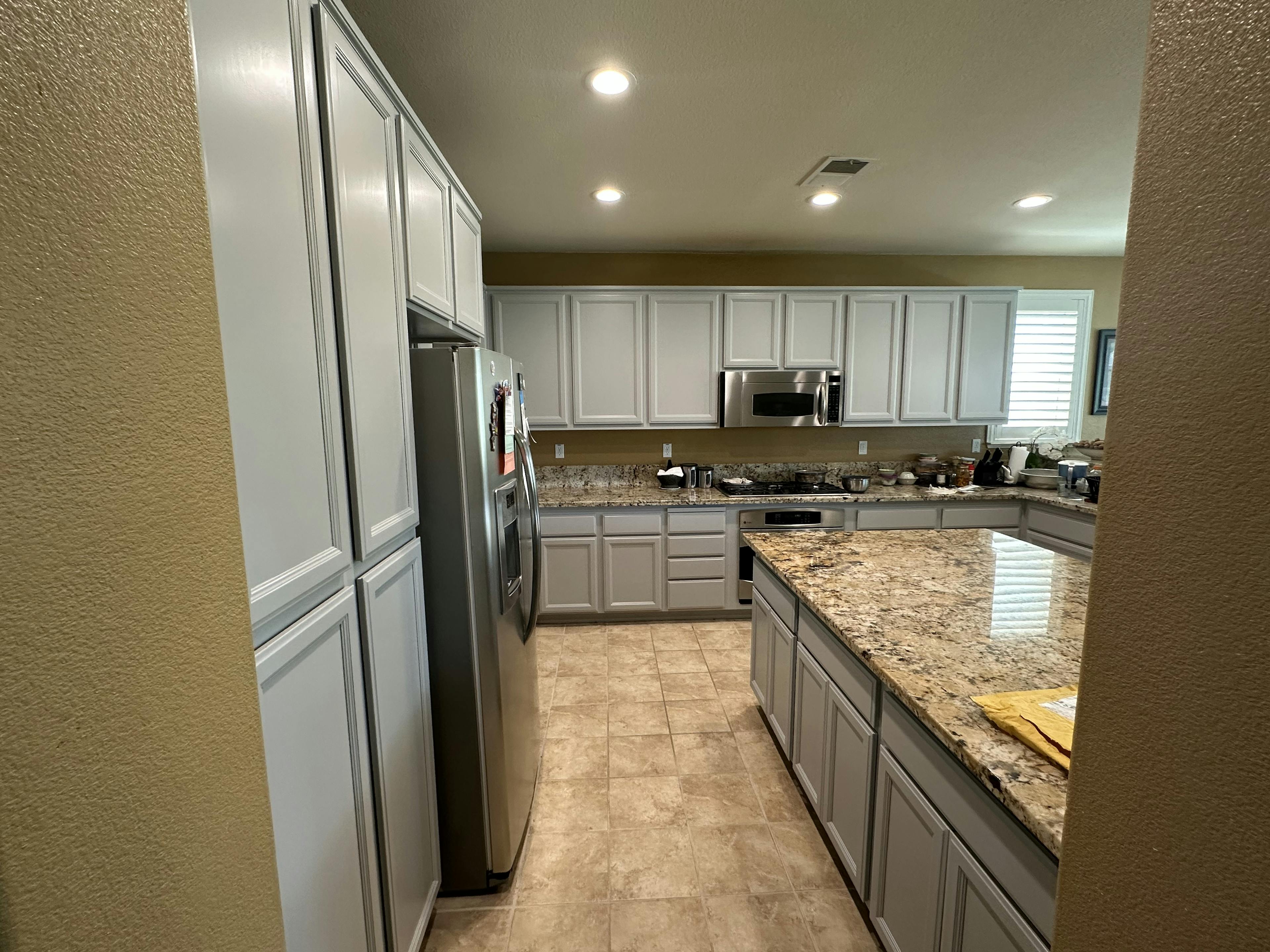 This kitchen cabinet painting project was for a homeowner in Elk Grove, CA. They wanted their cabinets to be matched to an existing color they had, so we custom matched the paint color to exactly match their existing color.