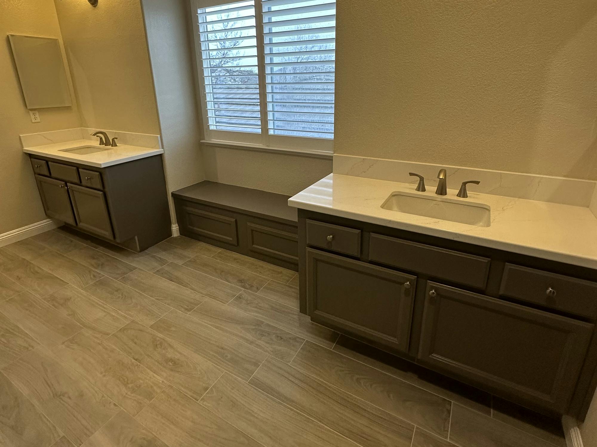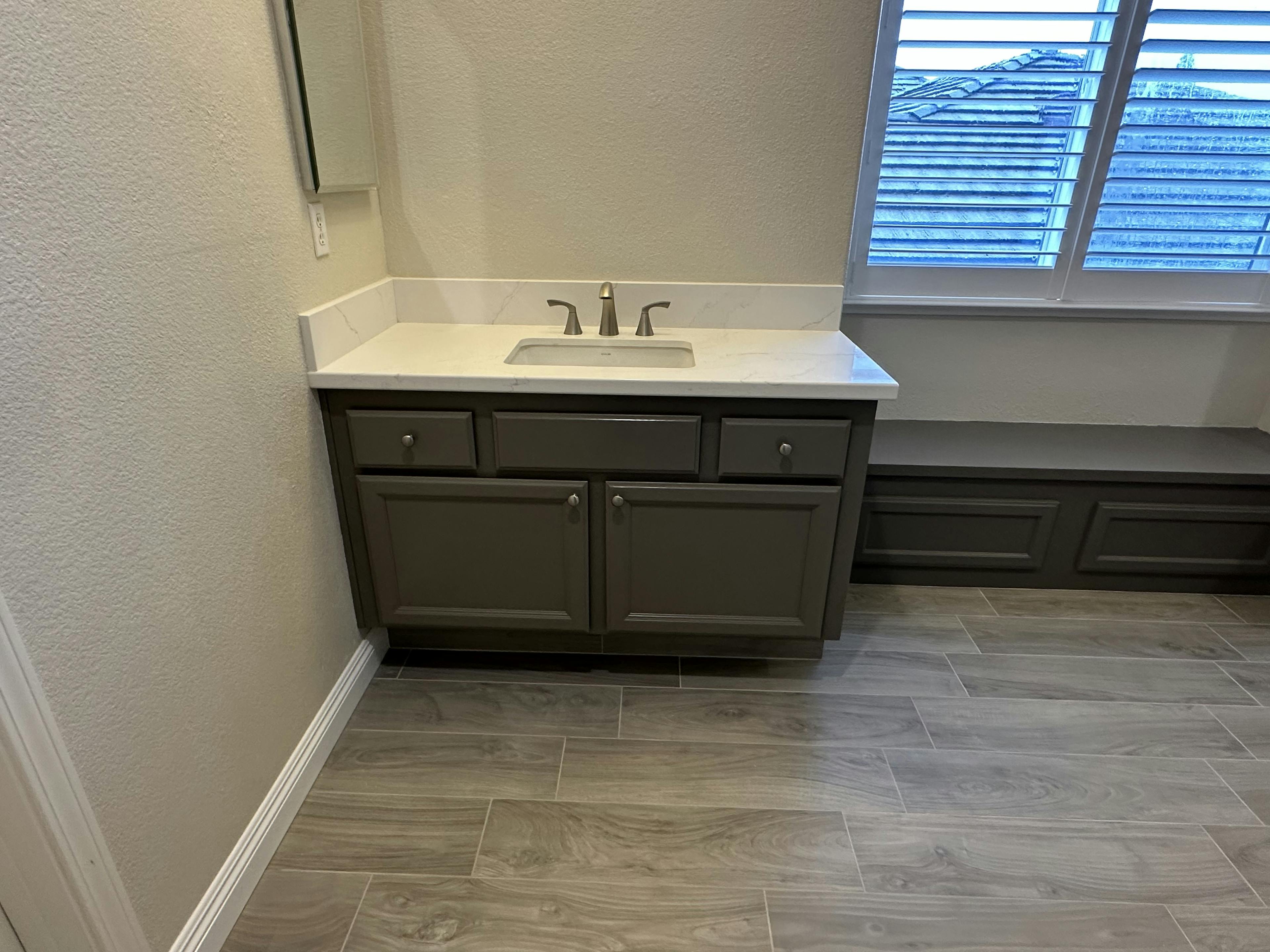 Essential Cabinet Painting completed a bathroom painting project for a homeowner in Elk Grove, CA. We painted their bathroom cabinets from a pure wood finish.