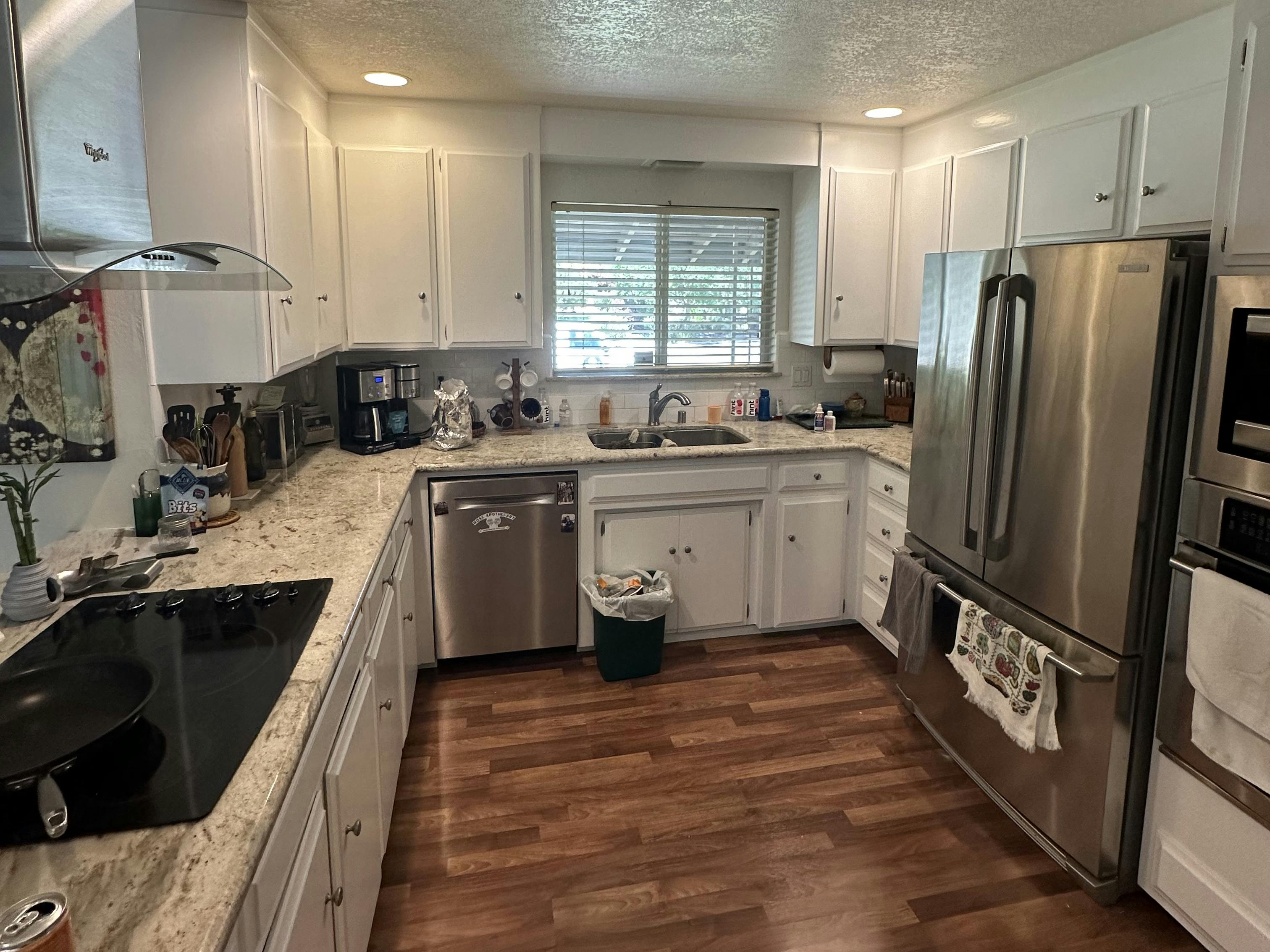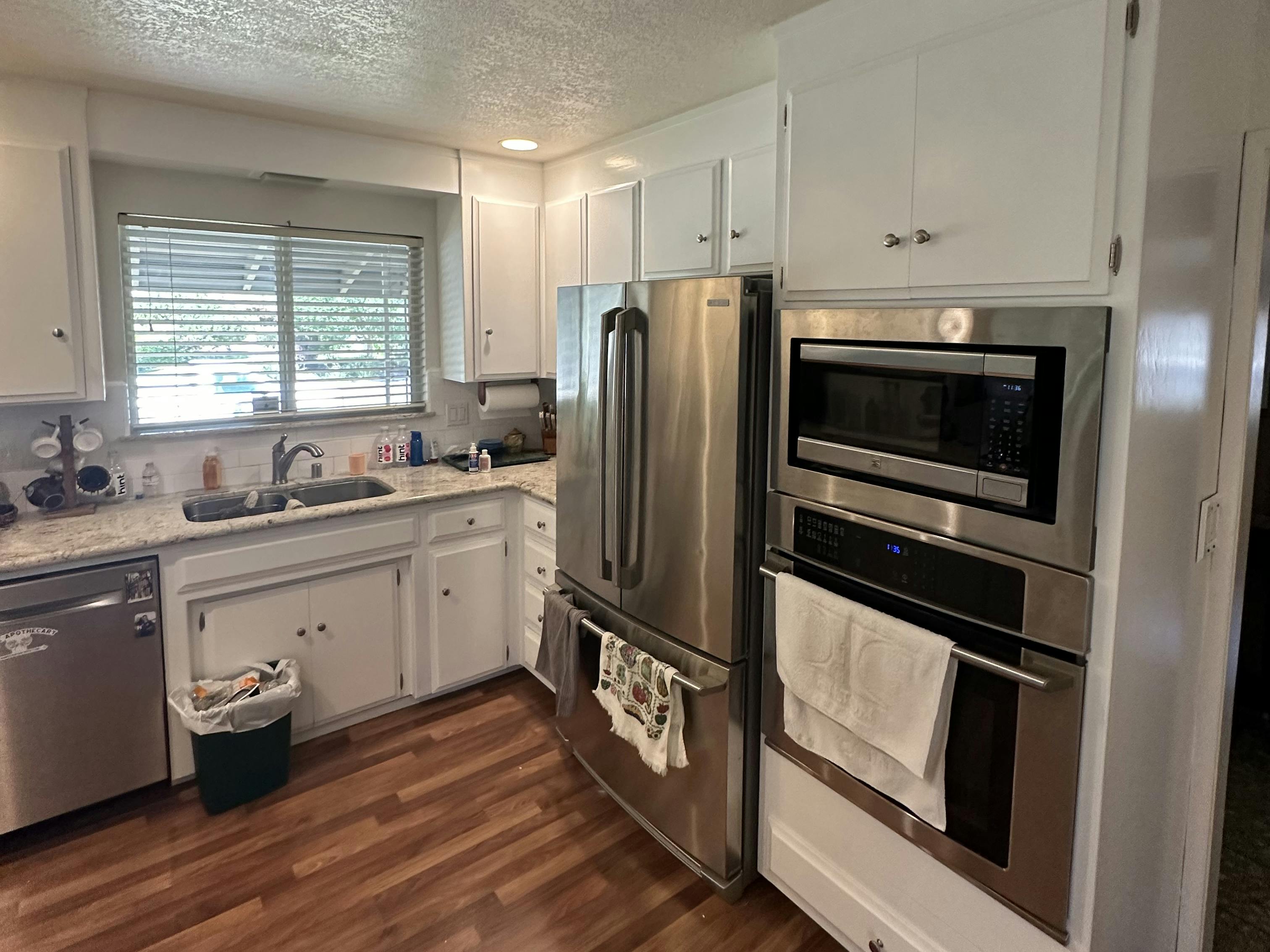 A repainting project we took on for a homeowner in Carmichael, CA. In the before pictures you can see the cabinets were stained. We took of all the cabinets, sanded them down at our shop, spray painted them with high quality KCMA approved cabinet paint, and then re-installed them for the homeowner.