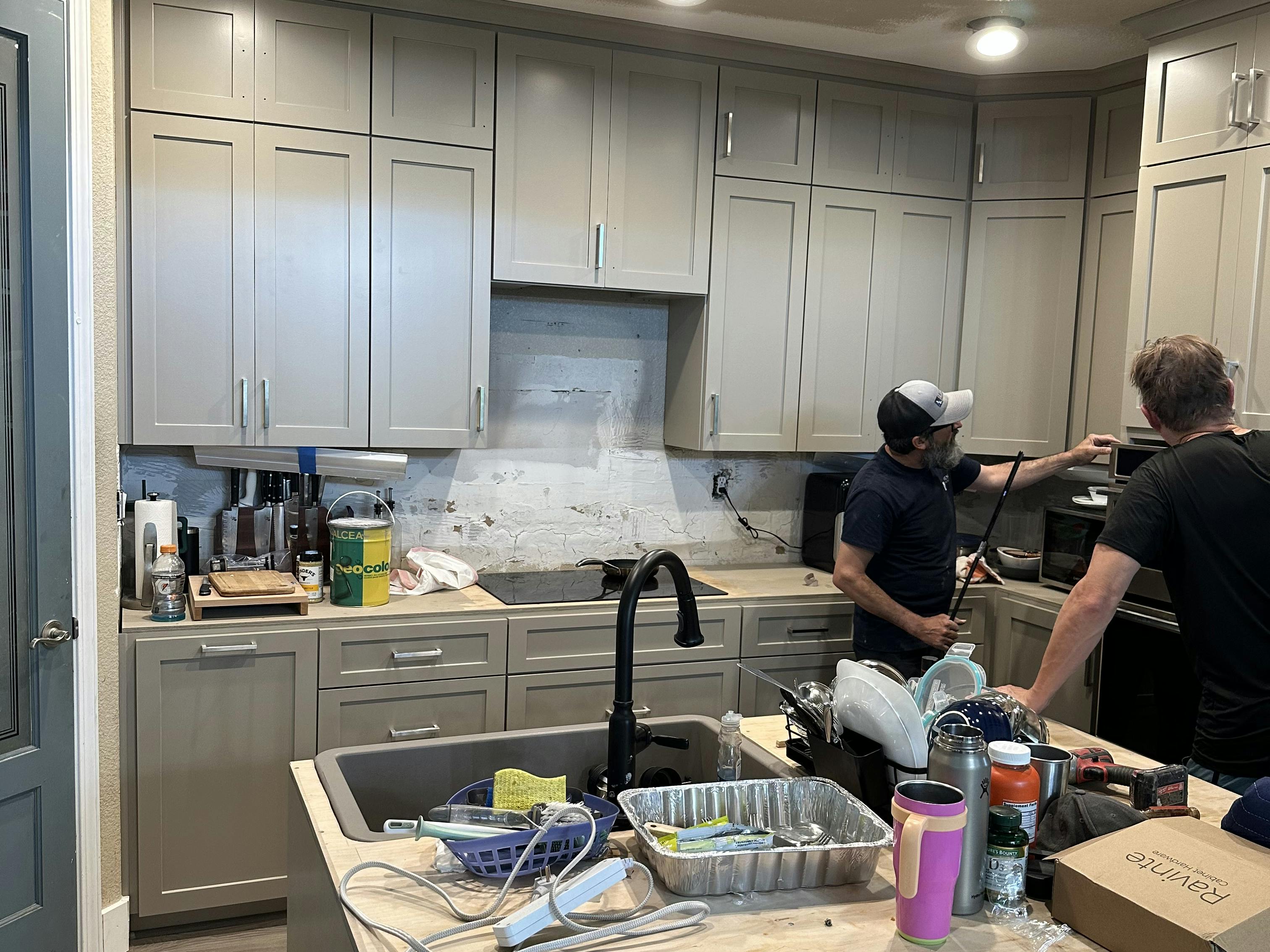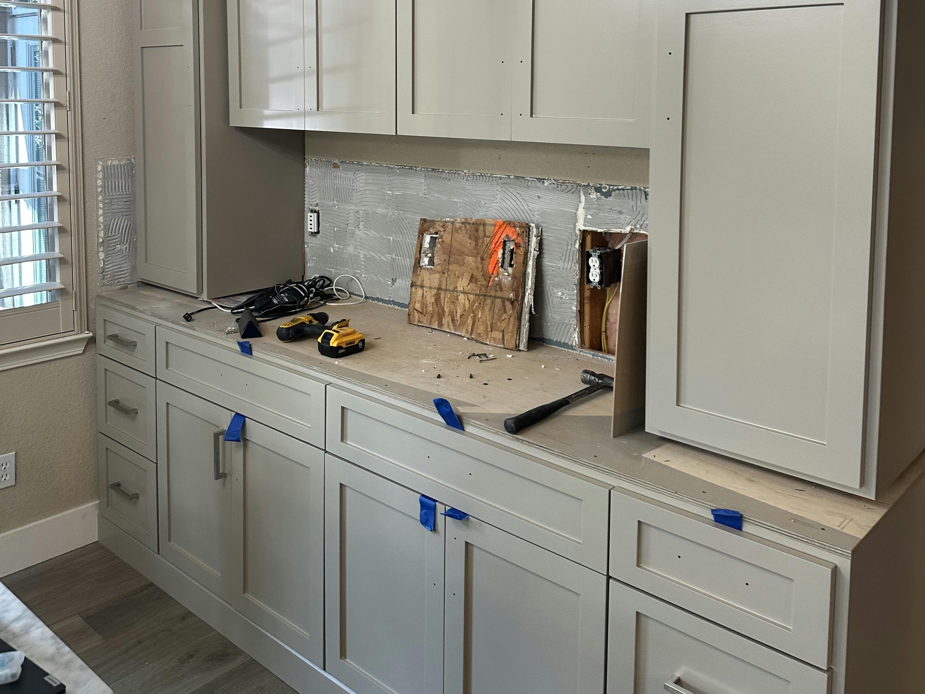 This project was for a returning customer. They had purchased brand new cabinets that were unfinished and wanted them painted. We painted the cabinets "Tony Taupe" with out KCMA