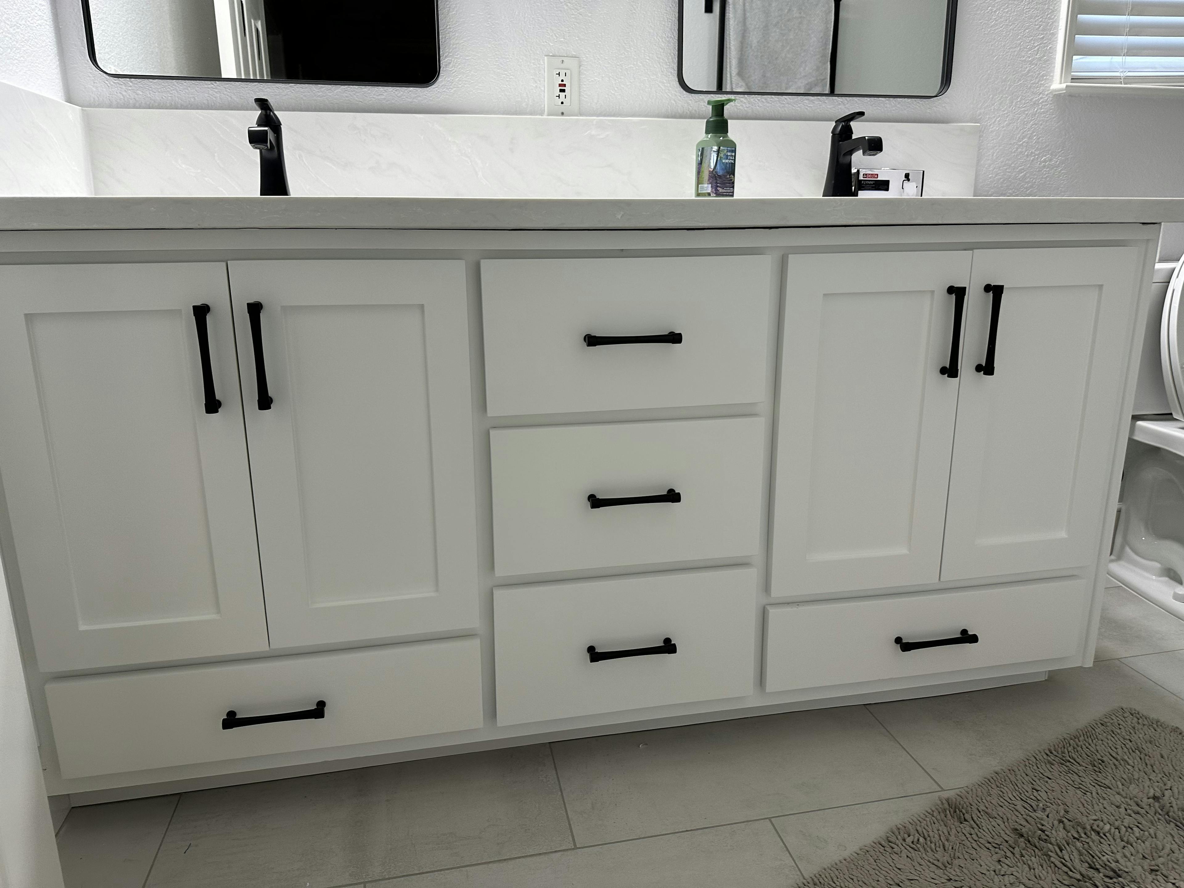 A returning customer in Elk Grove, CA came to us to get the entirety of their upstairs cabinets painted. We used Pure White by Sherwin Williams as our paint of choice (KCMA paint of course) to match their existing downstairs cabinets we painted earlier this year.