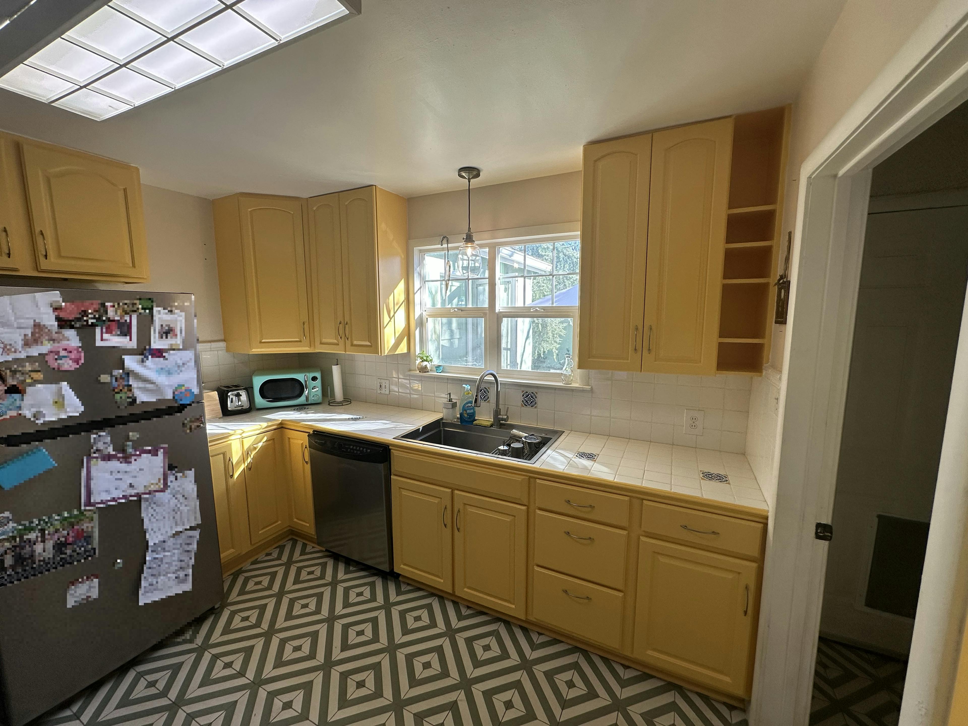 Yellow kitchen cabinet painting project in Sacramento, CA